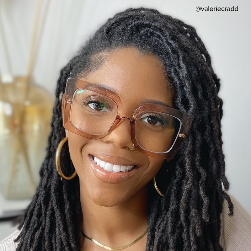 Zeelool offers Qatar square eyeglasses for women, champagne color thick frame and slim metal legs, elegant and fashion, customizable to prescription glasses.